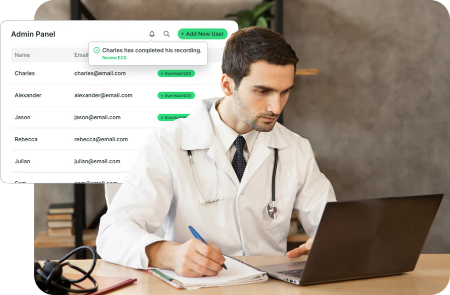 Use our tools for hospitals & researchers to manage multiple patient accounts. Receive notifications on activity and download raw ECG data.